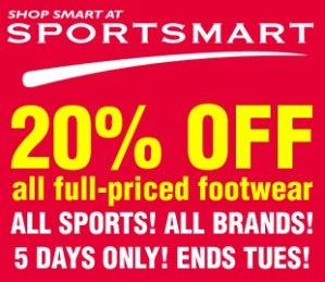 Head in to Sportsmart this weekend to grab a bargain on all full priced footwear. This offer ends Tuesday 1/11/11 so be quick! You won’t want to miss out!