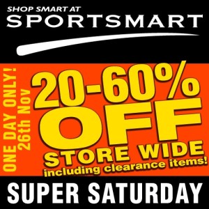 Super Saturday is on again at Sportsmart! You’ll save 20% to 60% off store wide, including clearance items for ONE DAY ONLY!